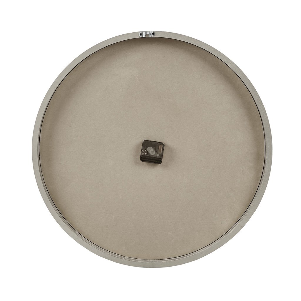 The Madison Park Mason 23.6" Wood Wall Clock offers a contemporary rustic charm to your home decor. This round clock features a grey metal frame with Roman numeral on a natural wood grain MDF, creating charming farmhouse look. A hanger hook on the reverse makes the clock easy to hang in any room. Measuring 23.6-inches, this large wall clock has quartz movement and brings a modern update to your decor. 1 AA battery (sold separately) is needed. Due to nature of real fir wood surface, product face will vary with some discoloration and wood knots (dot-like markings) unique to each piece.