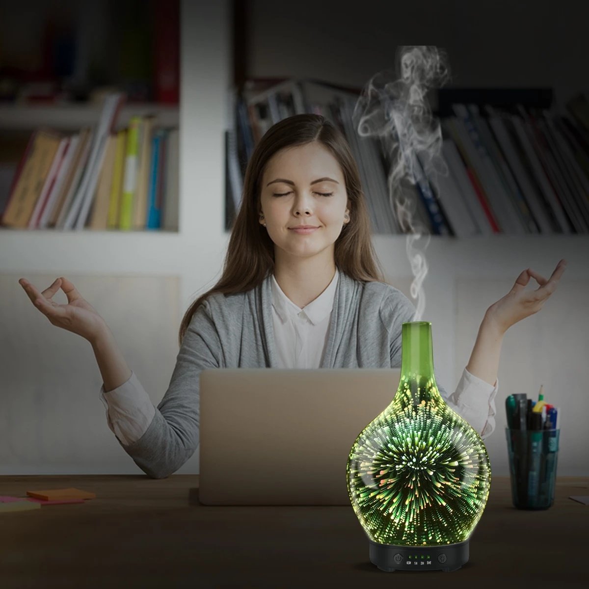 Home > 3D Fireworks Glass Vase Humidifier with 7 Color Led Night Light Aroma Essential Oil Diffuser Cool Mist Maker for Home Office