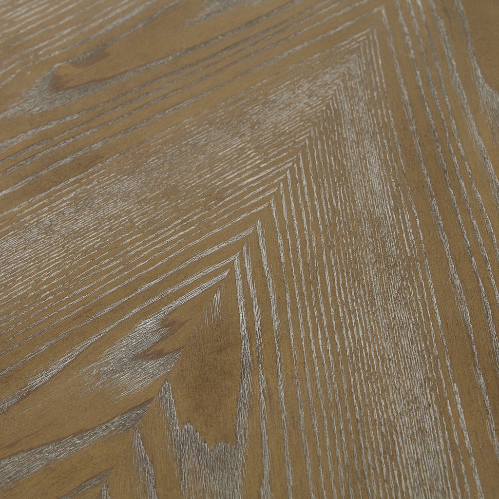 Top Material: Wood veneer and MDFBase Material: PolyresinTop Finish: Reclaimed walnutBase Finish: Antique cream