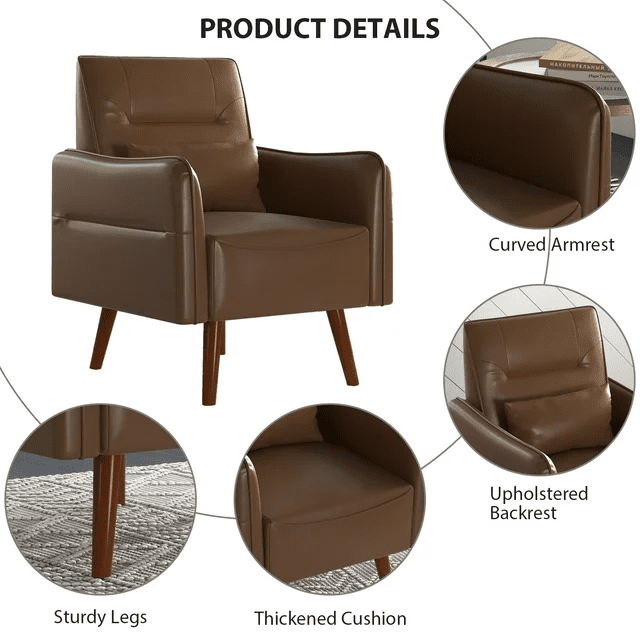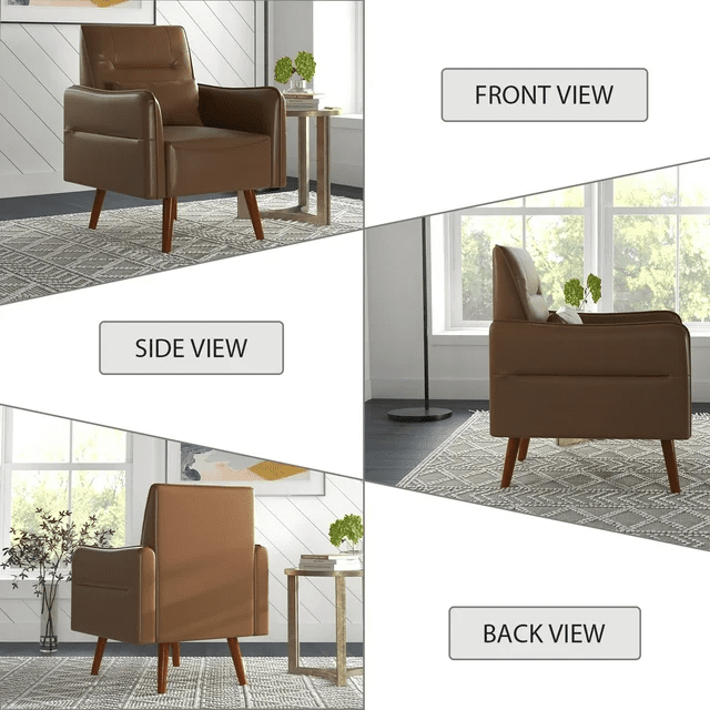 Home > Accent Chair Modern PU Leather, Cozy Reading Armchair, Wood Legs-Wood Grain, for Adult