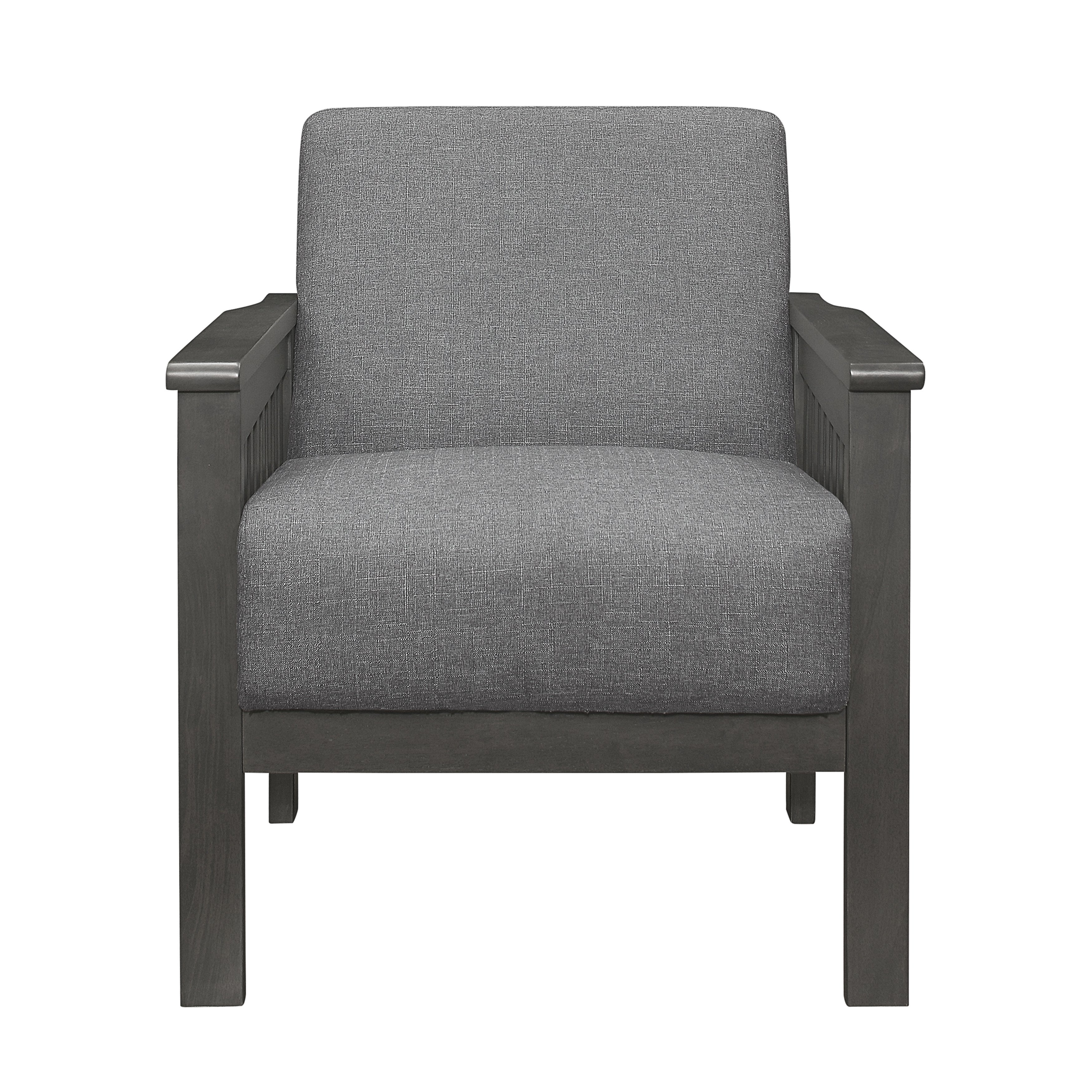 Designed with inspiration from the Arts & Crafts movement, the Lewiston Collection will be a classic addition to your home's décor. The chair's transitionally styled legs and vertical slat-supported wood arms are finished in an antique gray, providing complementing contrast to the gray linen-like fabric covering.PRODUCT DIMENSIONS: Overall Dimension: 27.5" x 31" x 32"HSeat Width: 22"Seat Depth: 21.5"Seat Height: 19.5"Arm height: 24.5"Listing Includes: One Accent Chair Only.Sofa & Loveseat: Not included.Simple Assembly Require.