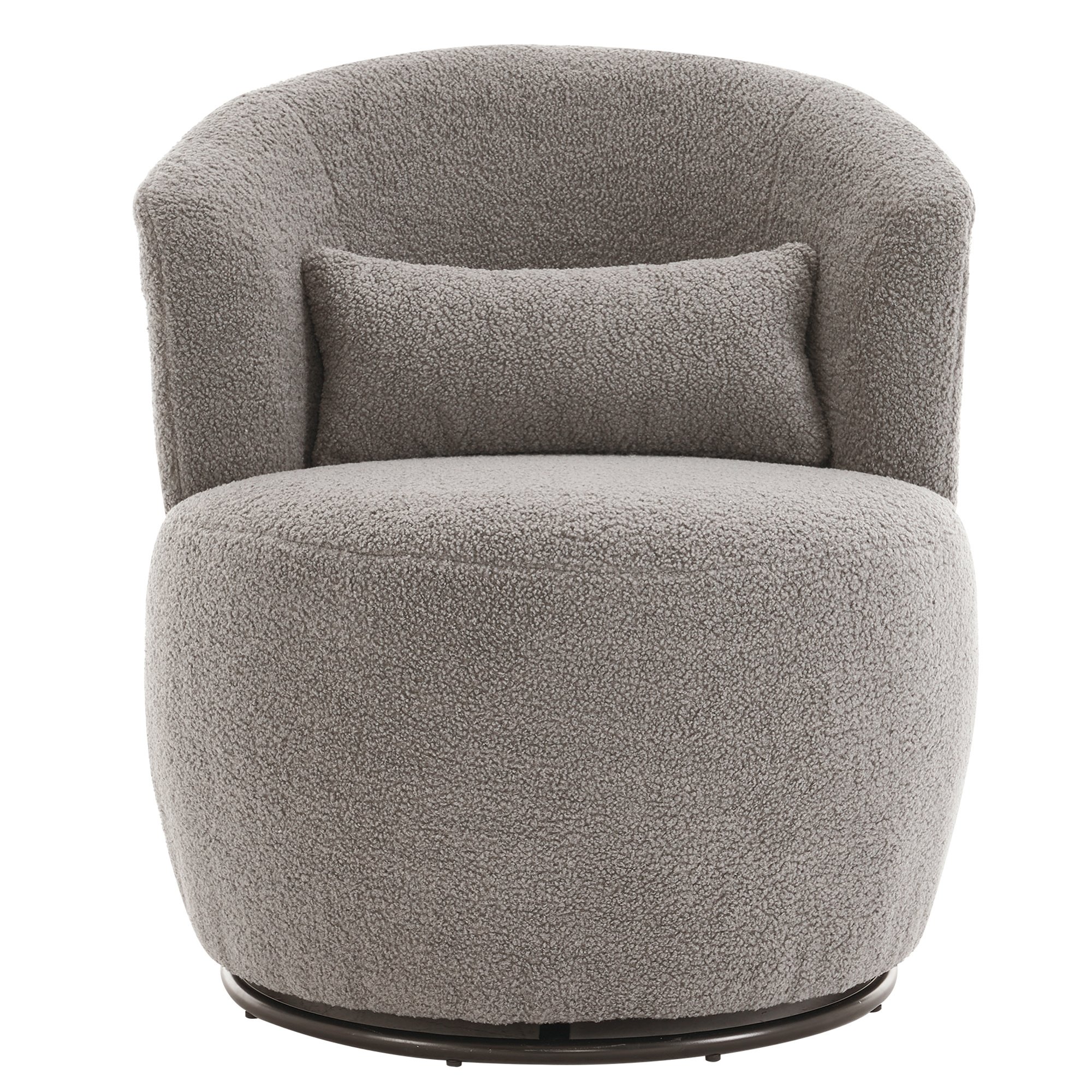 Home > Grey Plush Swivel Accent Chair - Contemporary Round Armchair with 360° Rotation and Metal Base for Living Room Elegance