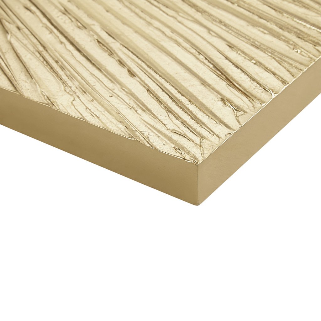 The Madison Park Signature Sunburst Hand Painted Triptych 3-piece Dimensional Resin Wall Art Set brings a bold and luxuriously striking update to your decor. A modern sunburst design with heavy textured detailing spreads across all 3 resin pieces to create a rich and glamorous look. The gold metallic painted finish adds a beautiful sheen and luster to elevate the design; while a 100% MDF box provides structure and support. Each piece in this set measures 15x45" and is finished with 2 D-rings on the reverse for easy hanging; simply hang pieces together with any desired spacing to create an eye-catching display on your wall. Spot clean only.
