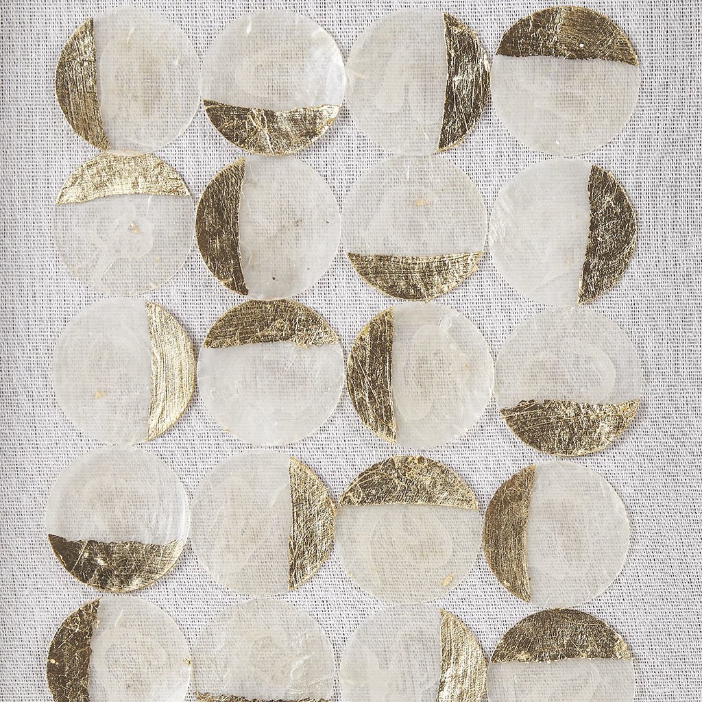 Wall art panel set with hand applied gold foil on natural capiz shell on linen and paired with natural colored frame