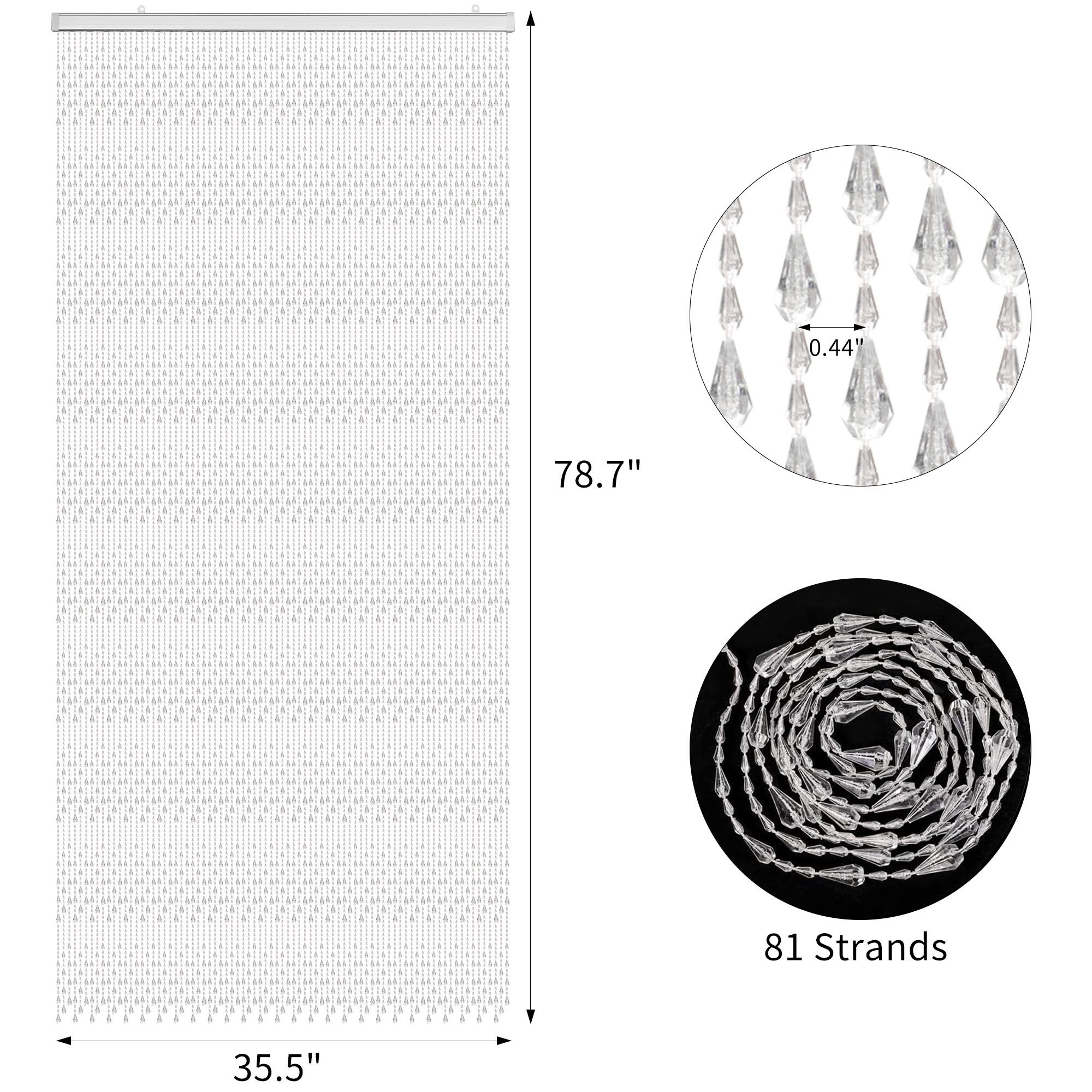 [Universal Size]This beaded curtain is 79" L x 35.5" W (3ft x 6.5ft), fits most regular size doors, buy more as window curtains or living room dividers. Comes with 1 free replacement chain, perfect for decorative use.