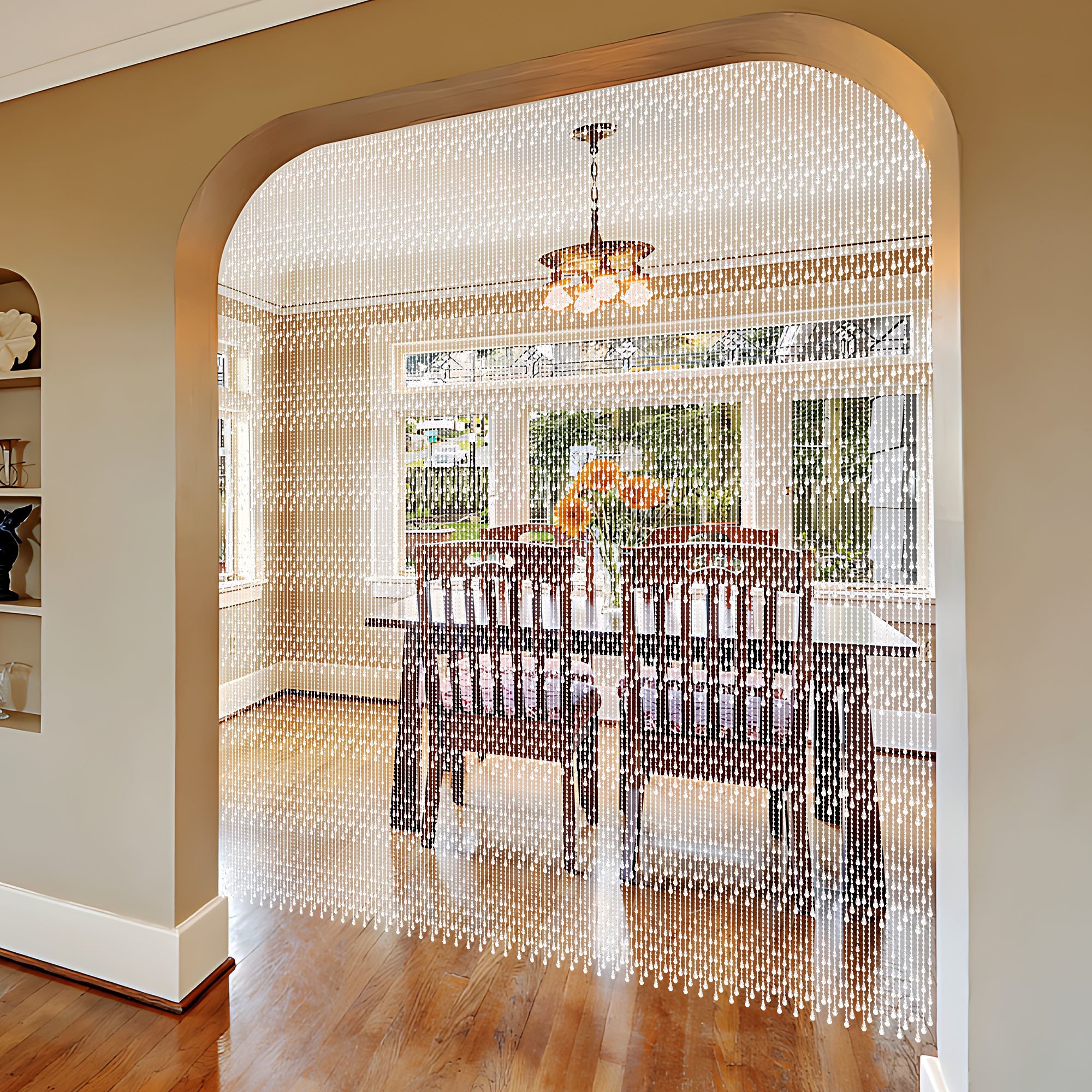 [High-quality & Durable]The crystal bead curtain is made of high-quality acrylic, very beautiful and versatile, waterproof and easy to hang. Each beading thread is cast with 3 strands of polyester thread, making it very strong and not easy to break.