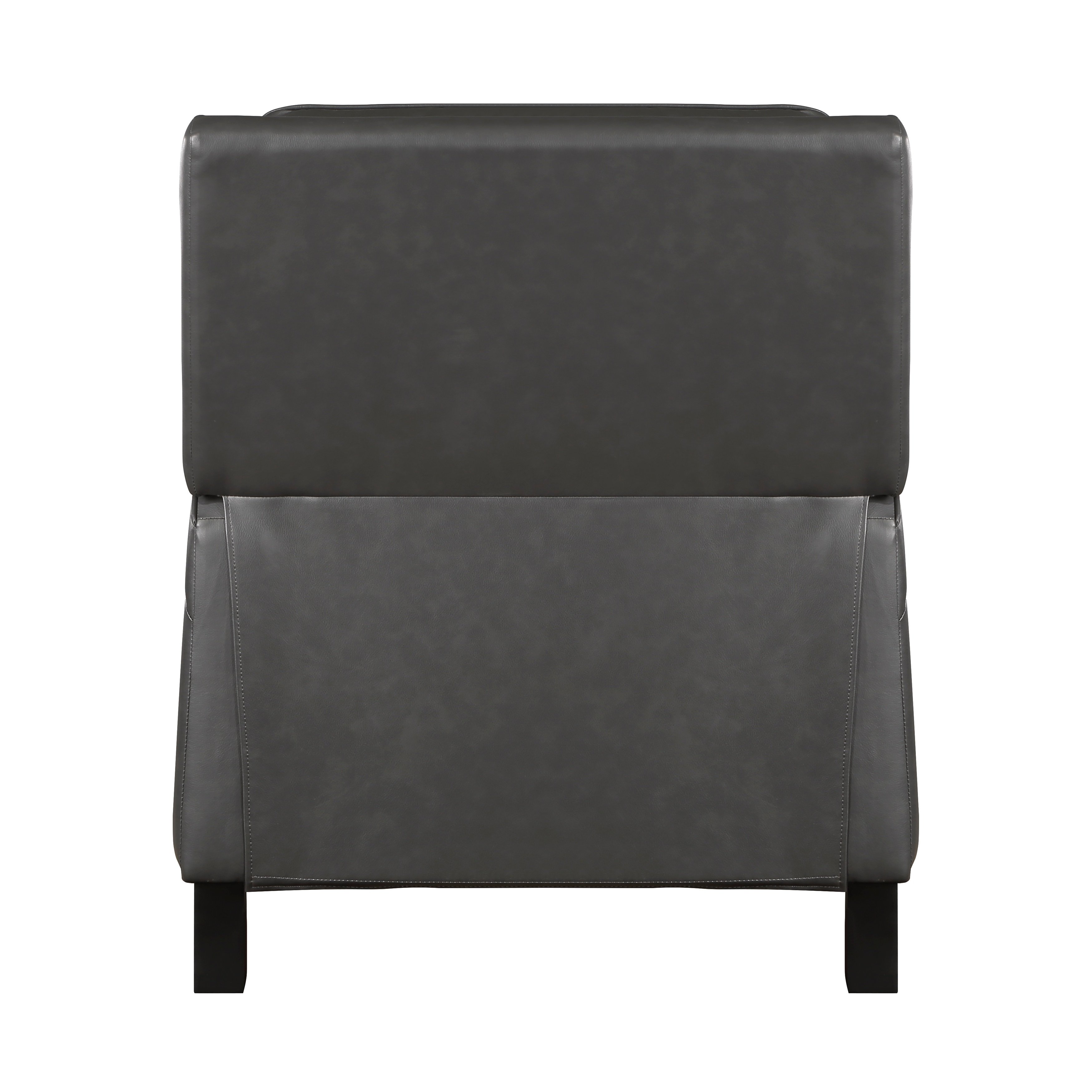 With a reclining mechanism that is engaged with your push, settling into the Berenson Collection is done so with ease. The tailored profile of the push back reclining chair is covered in gray faux leather and features nail head trim, lending to its transitional style, creating the perfect complement to your homes décor.