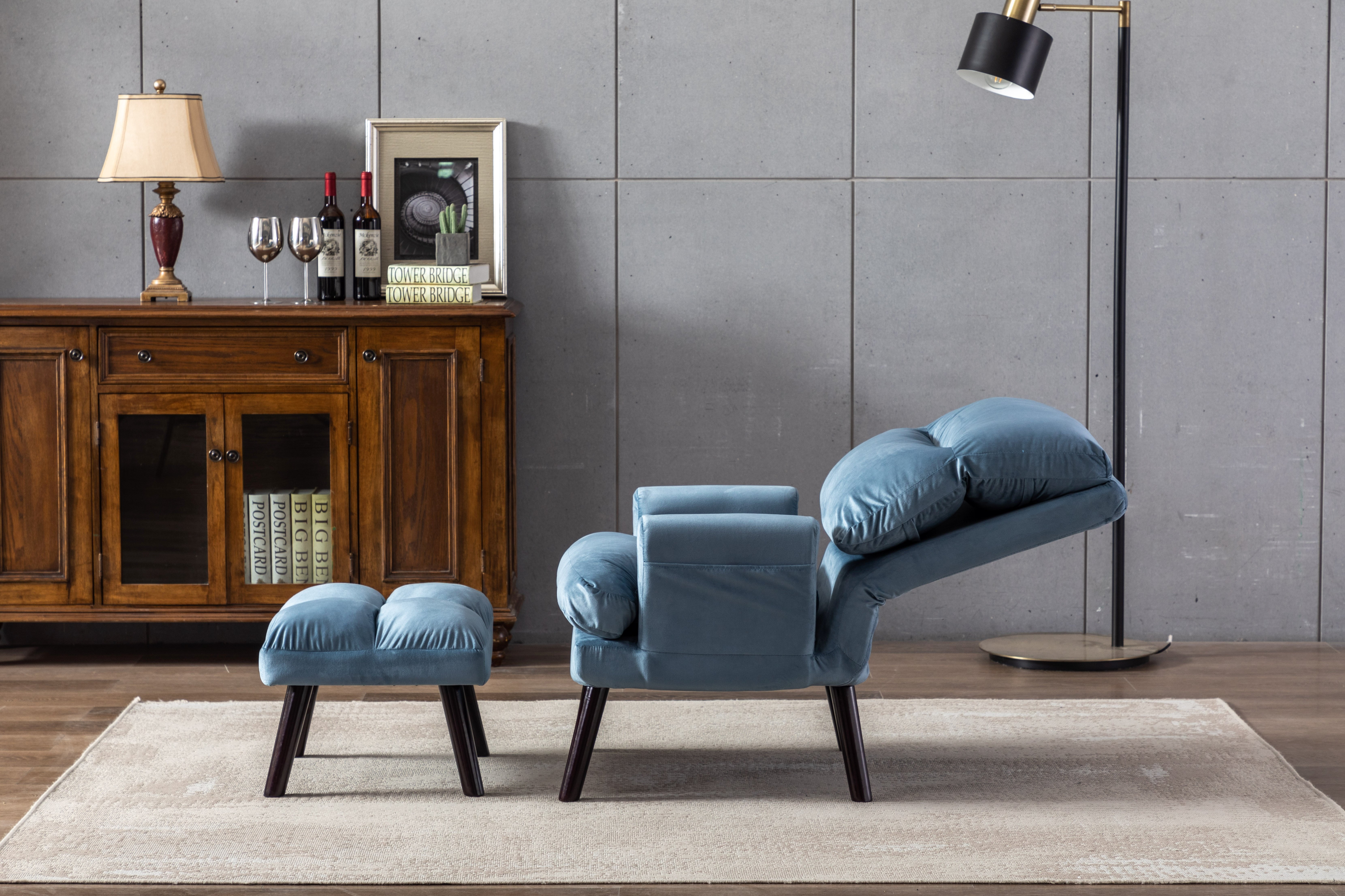Home > Soft Comfortable 1pc Accent Click Clack Chair with Ottoman Light Blue Fabric Upholstered Black Finish Legs Living Room Furniture