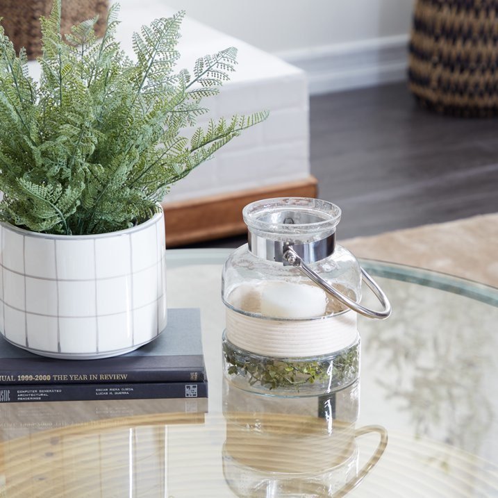 The Novogratz Clear Glass Decorative Candle Lantern with Curved Handle makes a perfect addition to any home