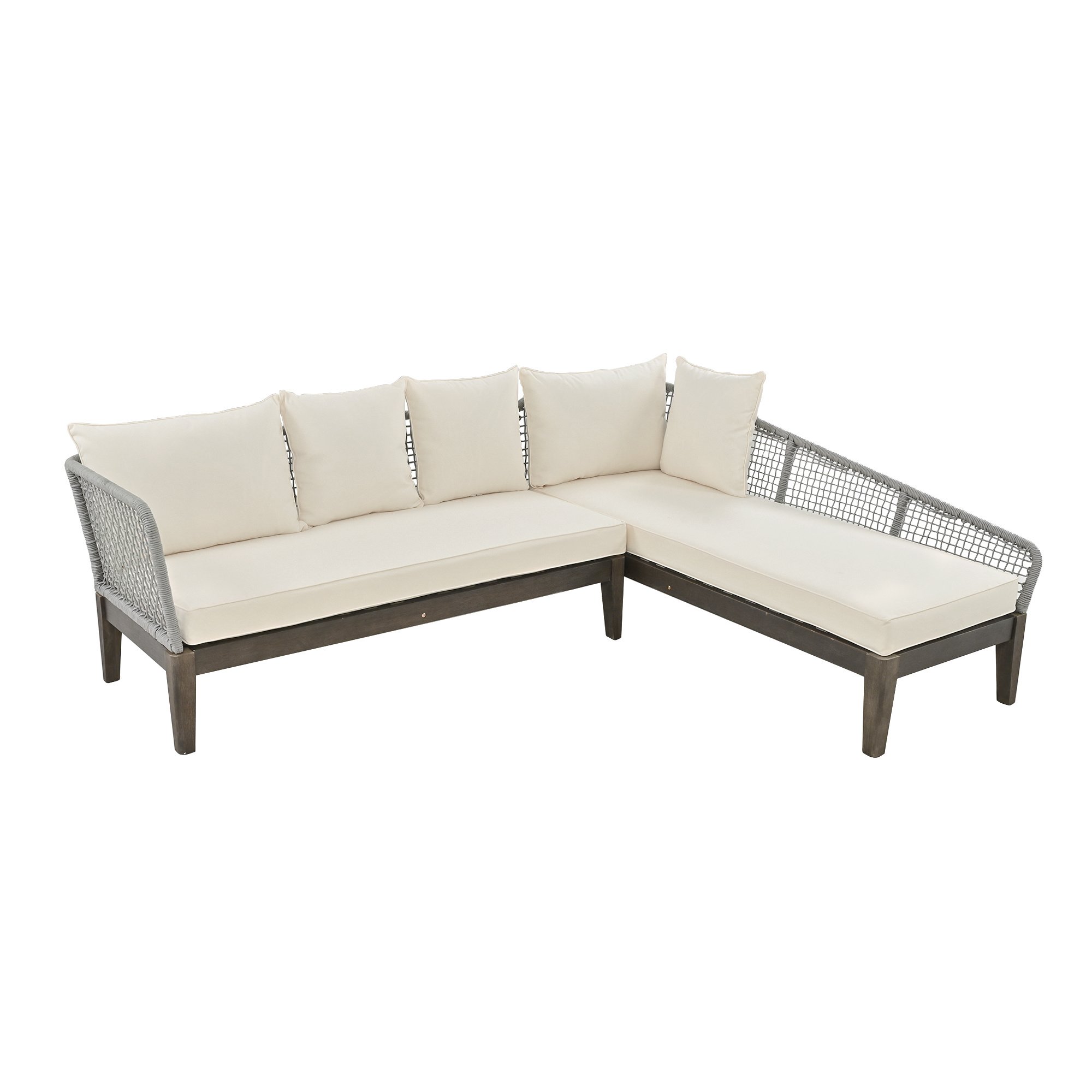 Unveil the charm of our 2-piece sectional sofa set, tailored for the great outdoors and spacious enough for 5 people to share the fun. With its robust Acacia wood frame and stylish, hand-tied Regatta ropes, durability meets elegance for this L-shaped ensemble. Our detachable polyester and foam cushions offer a cloud-like seat that's a breeze to clean.Ready to laugh and lounge? Your patio's social scene just got a stylish upgrade!