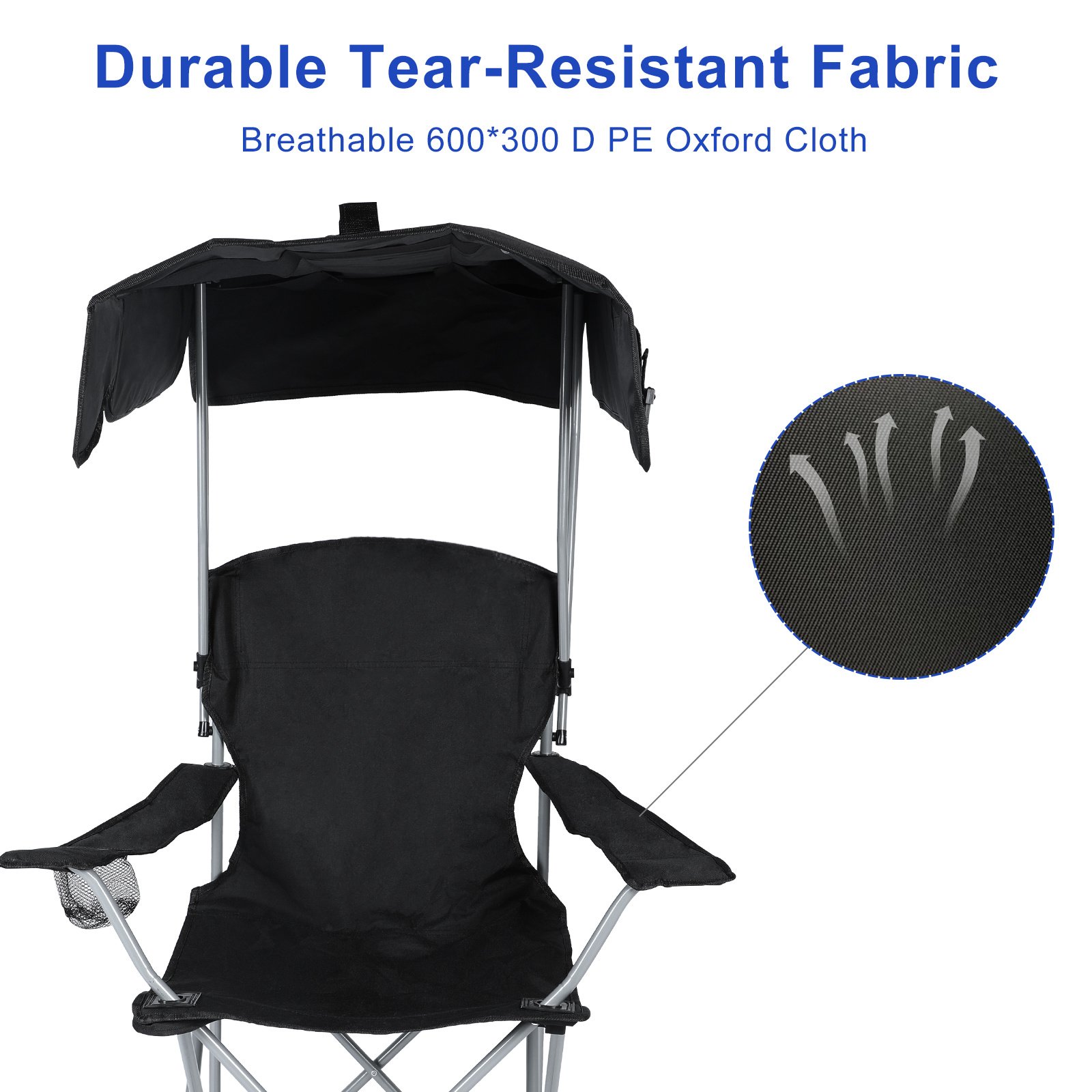 [Comfortable Lounge Chair] Our lounge chair is designed for outdoors. The chair comes with a canopy, which could block dazzling light and drizzle. The chair adopts breathable fabric and sturdy structure, you can sit comfortably the saucer chair to fishing,read a book or play a game, or even sleep on the side of the chair. It can not only bring you a period of leisure time, but also a perfect complement to the decoration of your room.